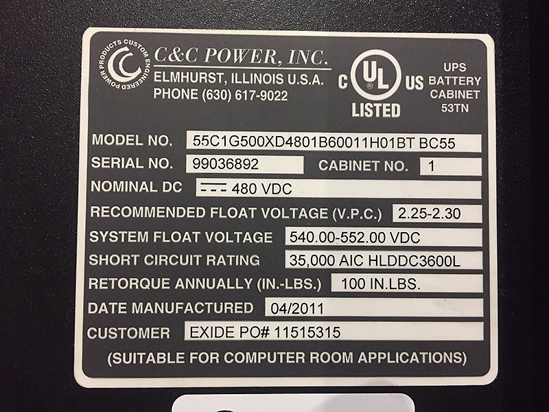 SKU: 8536 Category: Battery Cabinets Brand: C&C Power SystemsCondition:Used