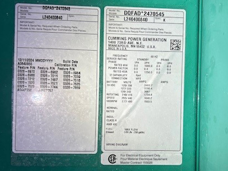 | Genset Serial Number | L240400840 |